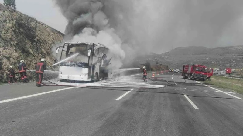 Şehirlerarası yolcu otobüsünde çıkan yangın paniğe sebep oldu