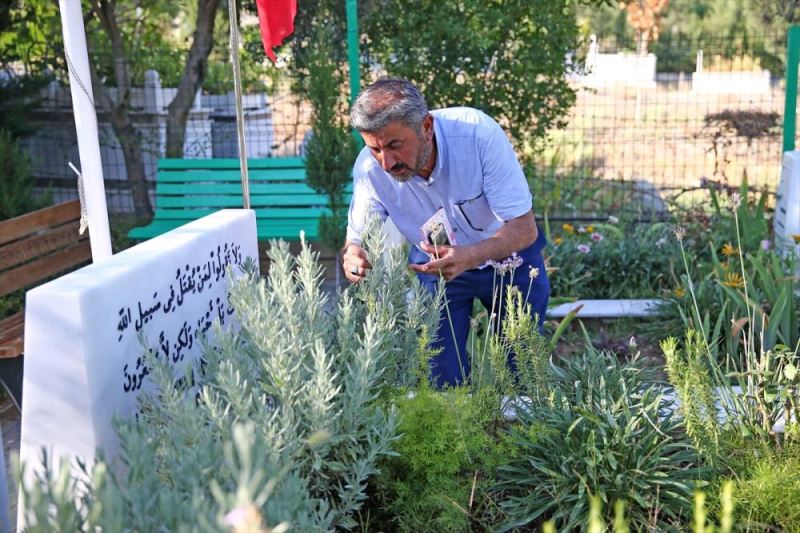 Evlatlarinin acisini yüreginde yasayan baba Oruç, kahraman polislerin mezarindaki çiçekleri koklayip suluyor.