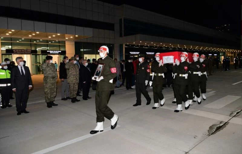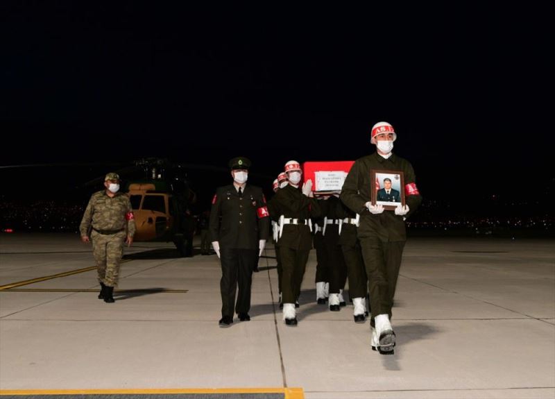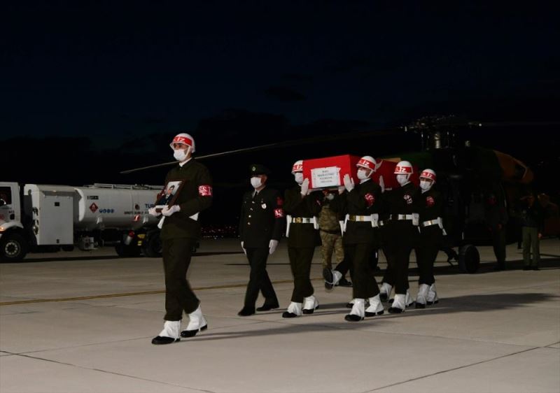 Askeri helikopterle Kahramanmaras Havalimani'na getirilen sehit Gündes'in (23) Türk bayragina sarili naasini ailesi ve yakinlarinin yani sira Vali Vahdettin Özkan, Büyüksehir Belediye Baskani Hayrettin Güngör, Garnizon Komutani Tankçi Albay Mehmet Emin Terzioglu, Il Jandarma Komutani Albay Numan Öksüz, Il Emniyet Müdürü Dogan Inci ve diger ilgililer sosyal mesafe kurallarina uyarak karsiladi.