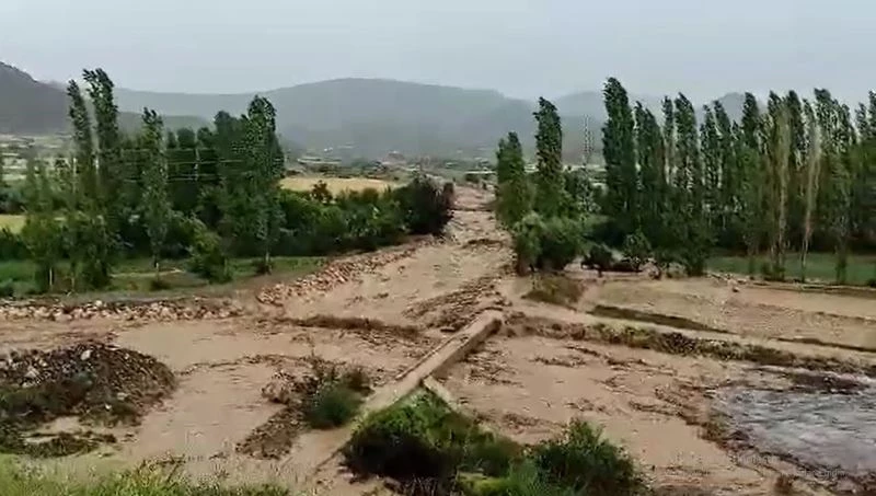Yozgat’ın Çekerek ilçesinde dolu yağışı ile birlikte meydana gelen selde sulama kanalları zarar gördü.