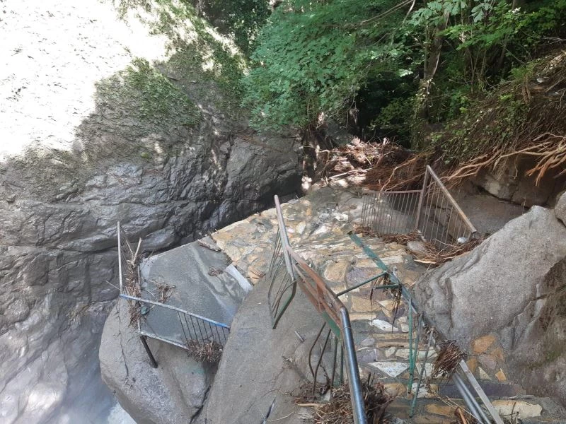 DÜZCE – Düzce’nin önemli turizm noktalarından olan ve çok sayıda ziyaretçinin geldiği Samandere Şelalesi yürüyüş yolları, seyir terası ve köprüler büyük hasar gördü.