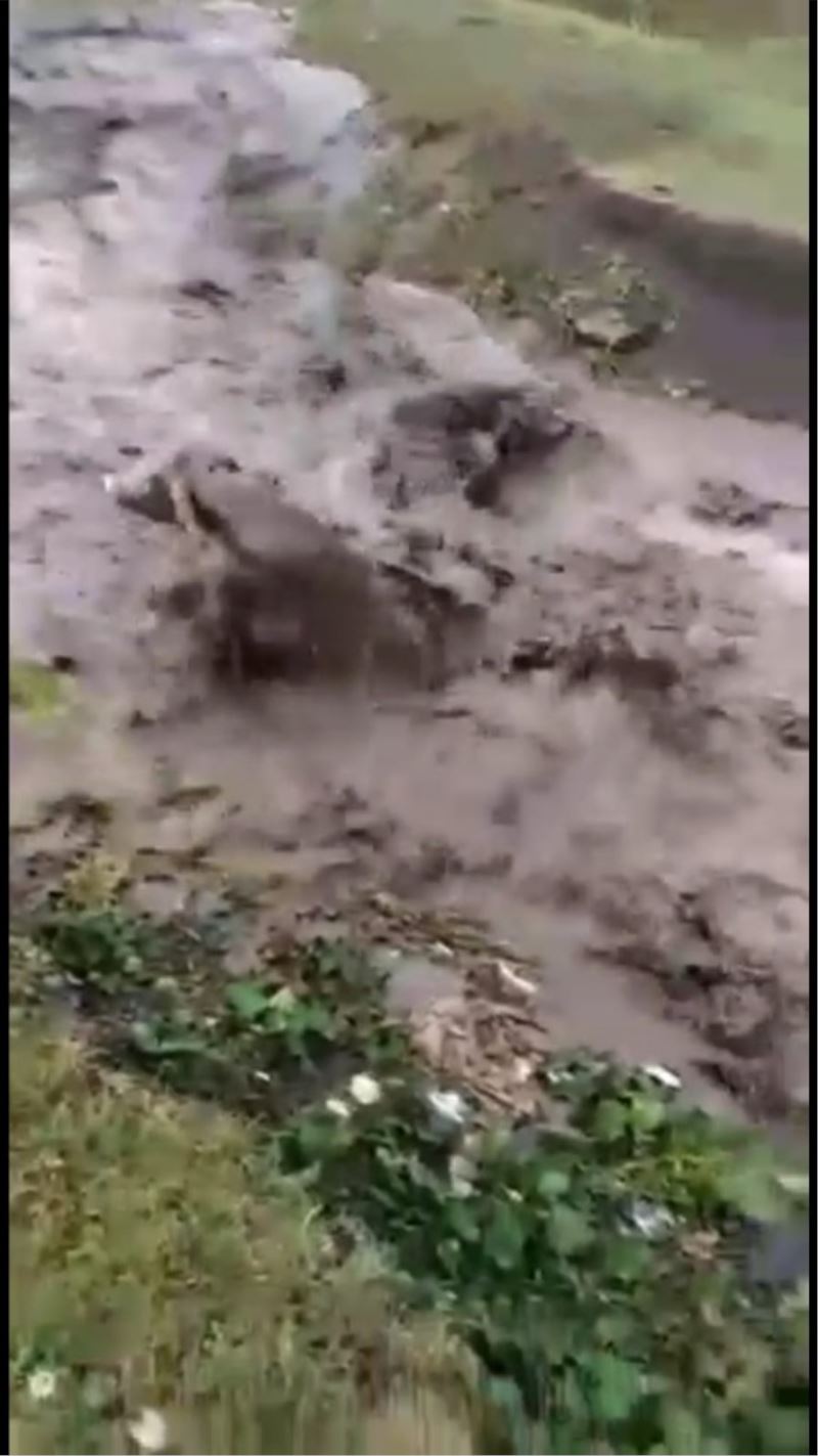 Ardahan’ın Göle ilçesinde etkili olan sağanak yağış, sele yol açtı. Sel sularına kapılan dana yaklaşık üç yüz metre boyunca sürüklendikten sonra kıyıya çıkarak kurtuldu.