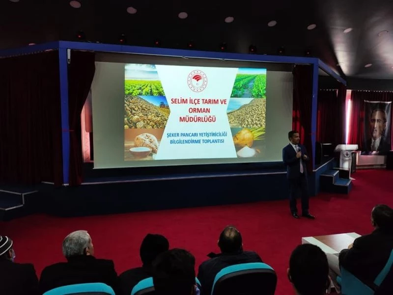 Selim’de Şeker Pancarı üretiminin yaygınlaştırılması amacıyla "Şeker Pancarı Yetiştiriciliği" üretici bilgilendirme toplantısı düzenlendi.