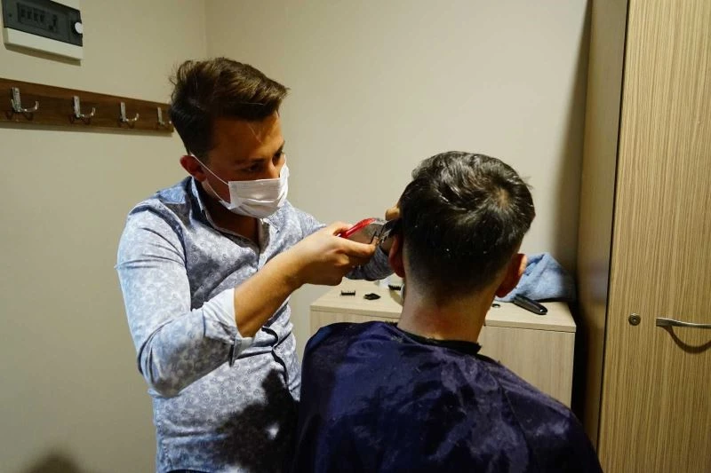Kredi ve Yurtlar Kurumunda kalan afetzedeleri traş etmek için geldiklerini söyleyen Kuzeykent Mahallesi’nde kuaförlük yapan Sadık Özkanoğlu, “Bizimde bir katkımız olsun dedik ve elimizden geldiği kadarıyla burada mağdur olan insanlara kendi mesleğimizle ilgili yardımcı olmak istedik elimizden geldiği kadar. Kuzeykent Mahallesi esnafları olarak dükkan sahipleri olarak bizler hepimiz burada bir hizmet vermek için geldik. Buraya selzedeleri traş etmek ve onlara yardım etmek istedik. İnşallah bu süreçten hep birlikte kısa bir sürede kurtulacağız. Bizim mesleğimiz berberlik. Bizler, kuaförüz. Burada yurtta kalan afetzedelerin saçlarını kesmek, sakal traşı yapmak için buraya geldik” dedi.