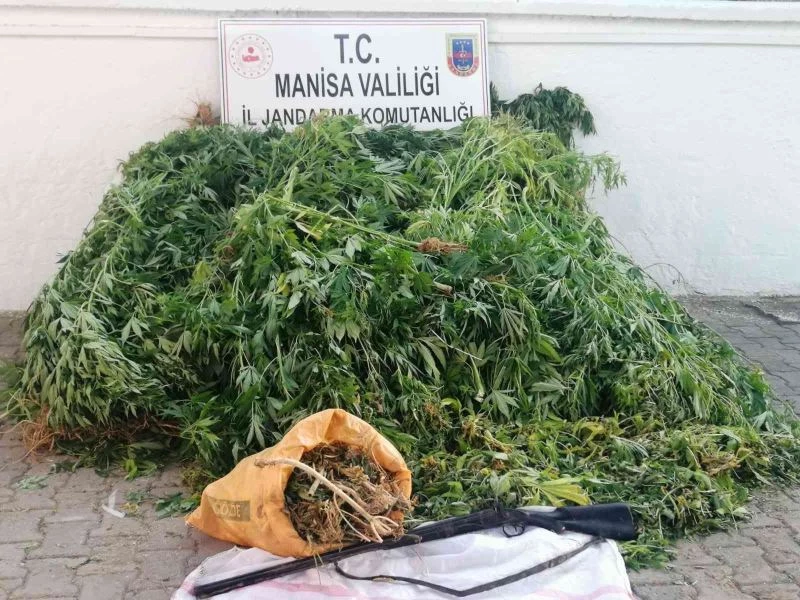Manisa’nın Sarıgöl ilçesi Dadağlı Mahallesi’nde dün akşam üzeri saat: 19.00 sıralarında, C.E. (62) isimli şahsın ikametinin bahçesindeki serada kenevir bitkisi yetiştirdiği duyumu alınması üzerine jandarma ekipleri tarafından yapılan aramada sera içerisinde boyları 170 ila 220 santimetre arası değişen 213 kök kenevir bitkisi, ikamette ise 1 kilo 700 gram kubar esrar, 11 gram kenevir tohumu ile 1 adet markası ve seri numarası bulunmayan ruhsatsız av tüfeği ele geçirildi. Olay ile ilgili tahkikata başlanırken, şüpheli C.E., kan ve idrar örnekleri ile ifadesinin alınmasının ardından Cumhuriyet Savcısının talimatı ile serbest bırakıldı.