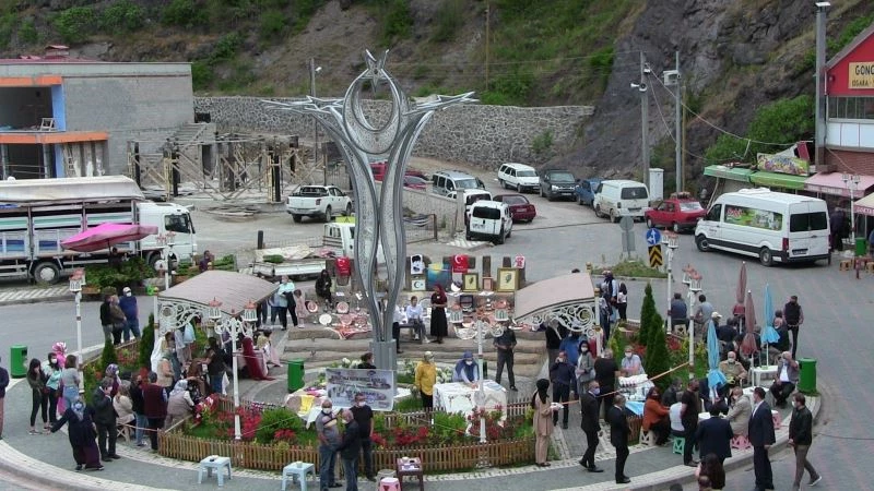 Artvin’in Murgul ilçesinde döner kavşağın ortasına açılan sergi renkli görüntülere sahne oldu. Murgul Kaymakamlığı ile Halk Eğitim Müdürlüğü öncülüğünde ve İş Kur desteği bakır işlemeciliği kursa açıldı. Kursa katılan yöre kadınları bakır işlemeciliği sanatını öğrenerek, hazırladıkları ürünleri sergileme kararı aldı. Hayat Boyu Öğrenme Haftası kapsamında açılan sergi, ilçede bulunan ve trafiğin yoğun olduğu kavşağın tam ortasında açıldı. Kavşakta sergilenen bakır işleme, mefruşat, elde kilim dokuma, tığ örücülüğü, geleneksel el sanatları, saç bakımı ve yapımı standartlarındaki ürünler Murgul halkının beğenisine sunuldu.