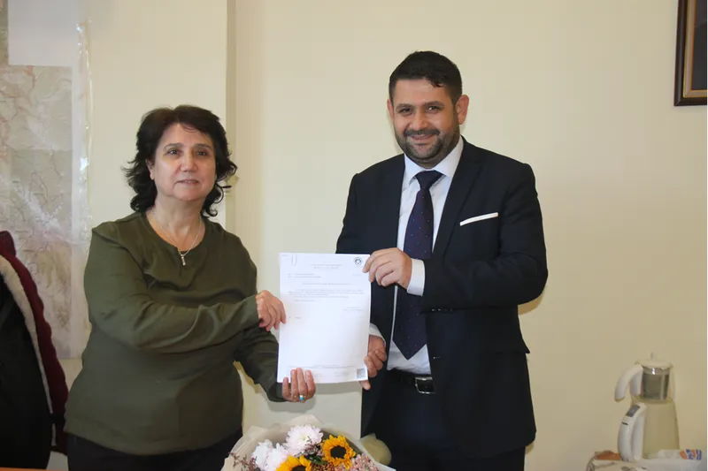 Barut ve yönetim kurulu üyeleri, mazbatalarını Serik Adliyesi'nde İlçe Seçim Müdürü Ayşegül Tülüce'den teslim aldı.
