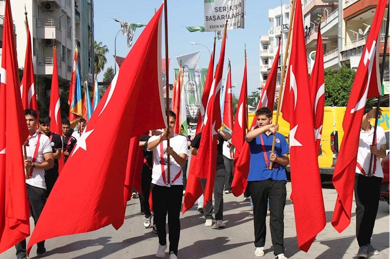 Atatürk Caddesi güzergahında devam eden ve Cumhuriyet Meydanı'nda son bulan yürüyüşe Serik Kaymakamı Cemal Şahin, Aile ve Sosyal Hizmetler İl Müdürü Galip Sökmen, Serik Belediye Başkan Vekili Mehmet Balık, İlçe Jandarma Komutanı Üsteğmen Ali Duman, Gençlik ve Spor İlçe Müdürü Mevlüt Özen, kurum amirleri, öğretmenler ve öğrenciler katıldı.