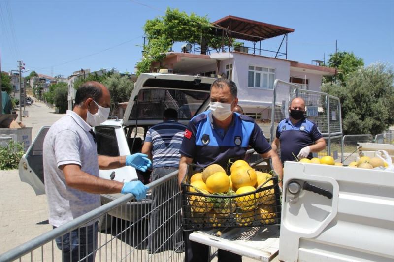 Merkez Mahallesi'ndeki 15 Sokak'ta karantinanın altıncı günündeki vatandaşlara Serik Belediyesince sebze ve meyve, hayırseverler tarafından ise 750 ekmek gönderdi.