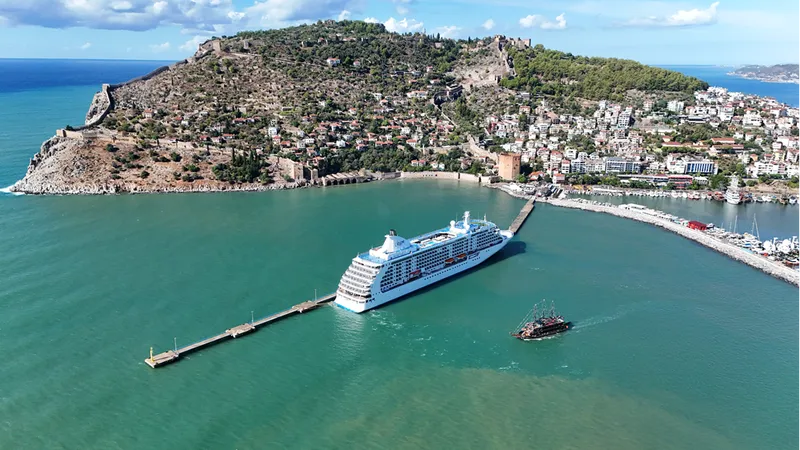 Rodos Adası'ndan demir aldıktan sonra rotasını Antalya'ya çeviren 206 metre uzunluğundaki kruvaziyer, sabah saatlerinde Alanya'ya ulaştı.