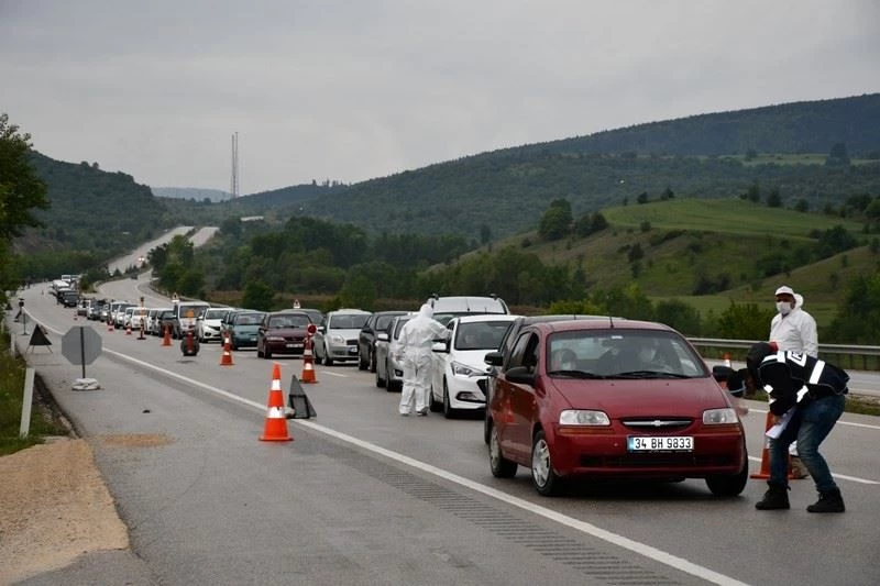 Karabük’te korona virüs (Covid-19) salgınında normalleşme sürecinin başlaması ile kaldırılan seyahat kısıtlaması sonrası kontrol noktalarında uzun araç kuyrukları oluştu.