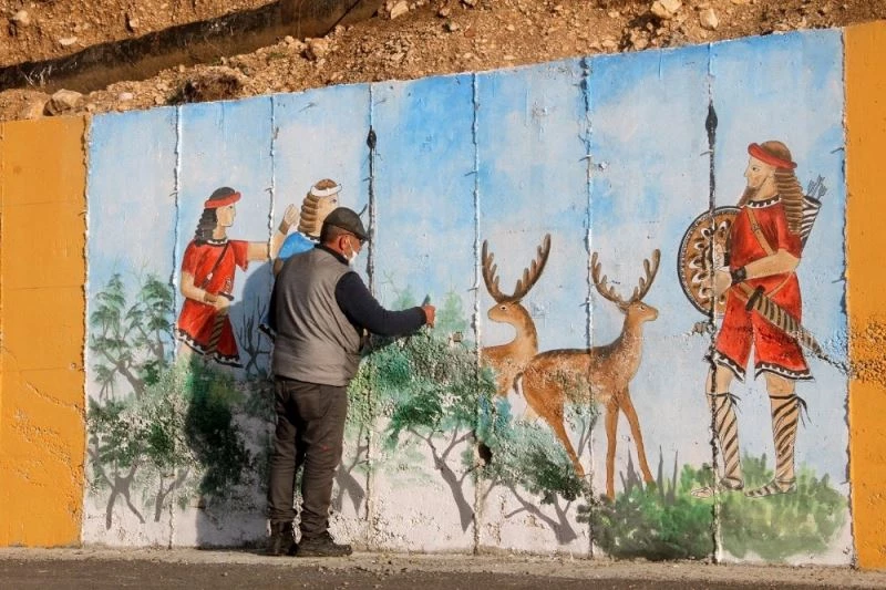 Muğla’nın Seydikemer ilçesinde, Tlos Antik Kenti önündeki istinat duvarı, ressam Ali Rıza Başarır tarafından çizilen Likya dönemine ait figürlerle rengarenk oldu.