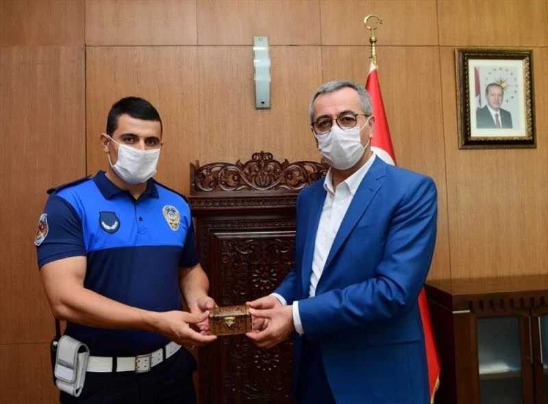 KAHRAMANMARAS (AA) - Kahramanmaras Büyüksehir Belediye Baskani Hayrettin Güngör, seyir halindeki otomobilde çikan yangini söndüren zabita Enes Dogan'i altinla ödüllendirdi.