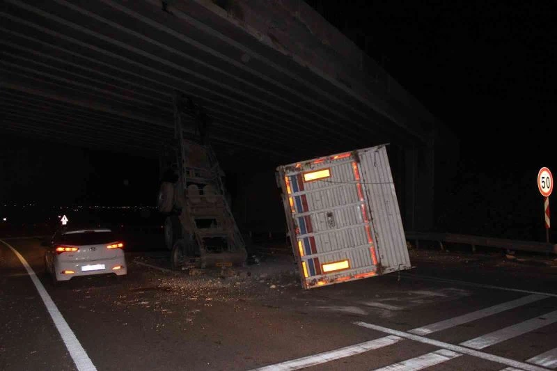 Seyir halindeki tırın açılan dorsesi köprüye çarptı