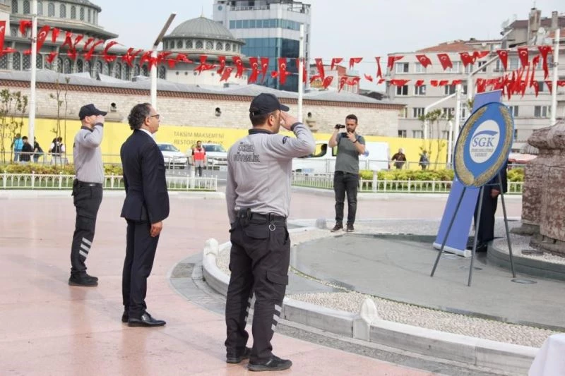 Sosyal Güvenlik Haftası Taksim anıtına çelenk bırakılarak kutlandı. Bu haftada bilgilendirme, rehberlik, farkındalık oluşturabilecek ve sosyal güvenlik bilincinin kazanılmasını sağlayacak birçok etkinlik yürütülmesi hedefleniyor.