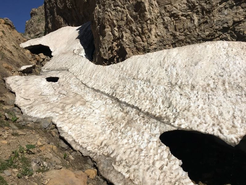 Şırnak’ın Uludere ilçesine bağlı Hilal beldesinde yaylalarda haziran sıcaklarına rağmen erimeyen kardan tüneller görenleri hayran bırakıyor. Özellikle fotoğraf çekmek için bölgeye gelen ziyaretçiler, yazın kavurucu sıcaklarından kardan tünellerin içine girerek kurtuluyor.