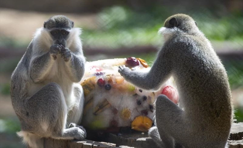 Her hayvanin beslenme aliskanliklarina göre farkli meyvelerin konuldugu buz kaliplarindaki meyve kokteylleri, hayvanat bahçesi sakinleri için lezzetli bir alternatif olusturuyor.
