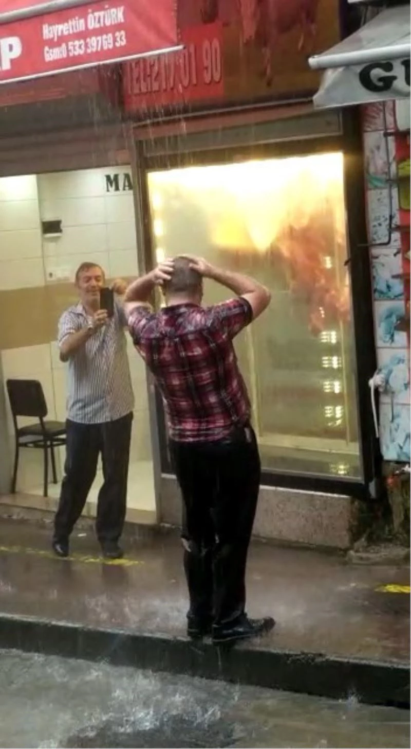 Sıcaklardan bunalan Rizeli yağmur yağınca sokak ortasında duş aldı