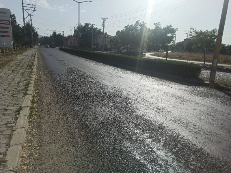 Sıcaklığın 42 dereceye çıktığı Şuhut’ta asfalt eridi