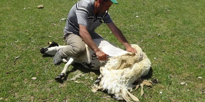Erzincan’da hava sıcaklıkları 32 dereceye kadar yükselince, bunalan koyunlar kırpılarak sıcaklardan daha az etkilenmesi sağlanıyor.