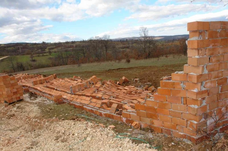 Şiddetli lodosta çiftlik duvarı büyük bir gürültü ile çöktü