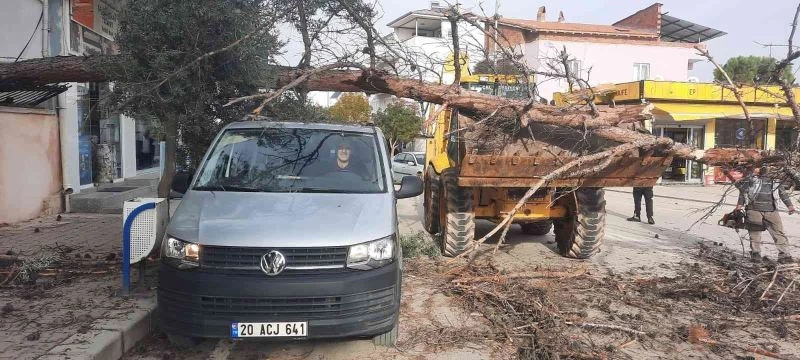 Denizli’nin Çal ilçesinde şiddetli rüzgardan kırılan ağaç, park halindeki ticari aracın üzerine düşerek maddi zarara yol açtı.
