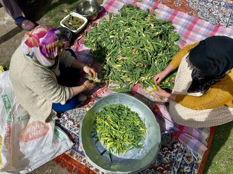 Karların erimesi ve ilkbaharın gelmesiyle doğada kendiliğinden yetişen ve şifa kaynağı olarak bilinen çiriş otu, binbir zahmetle dağlardan toplandıktan sonra sofraları süslüyor.