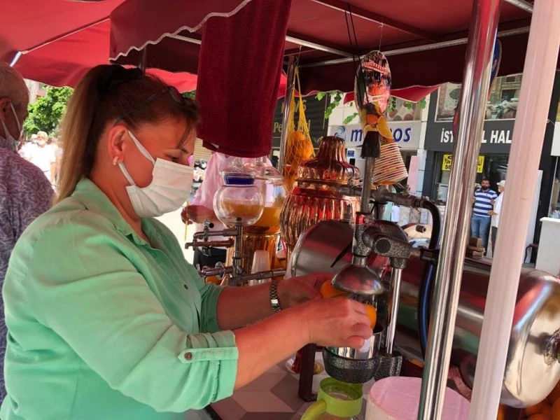Türkiye’de sadece Eskişehir’de portakal, limon, şeker ve soda karışımı ile hazırlanan ’Sifon’ limonata, Satır çiftinin tezgâhında yoğun ilgi görüyor.