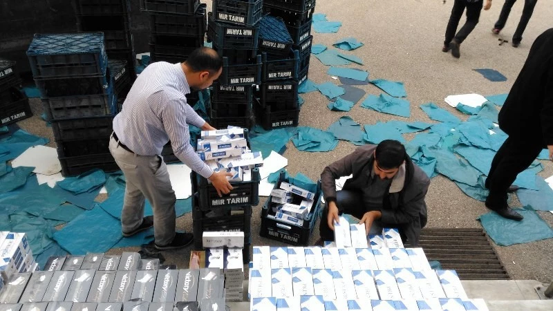 Osmaniye`de polisin şüphe üzerine durdurduğu bir kamyonun kasasındaki plastik meyve kasalarından 28 bin 450 paket gümrük kaçağı sigara çıktı.