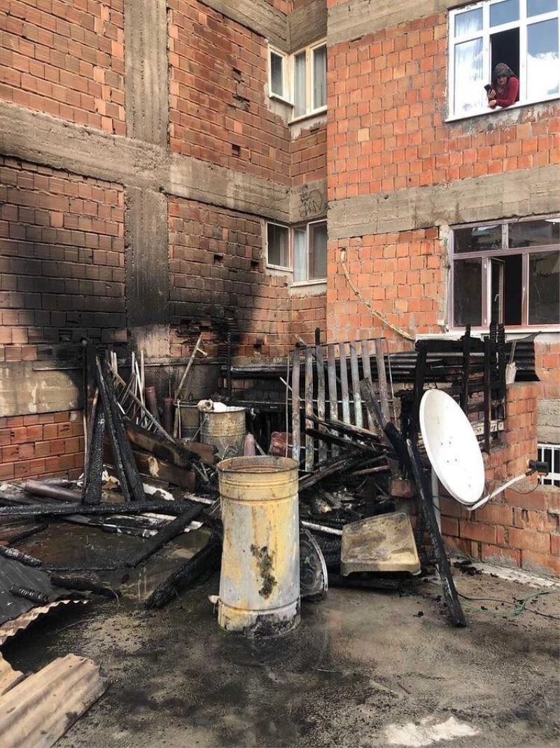 Diyarbakır’ın Bağlar ilçesinde sigaranın meydana getirdiği yangında odunlar alev aldı, büyük bir facia itfaiye ekipleri tarafından engelledi, o anlar cep telefonu kameralarına yansıdı.