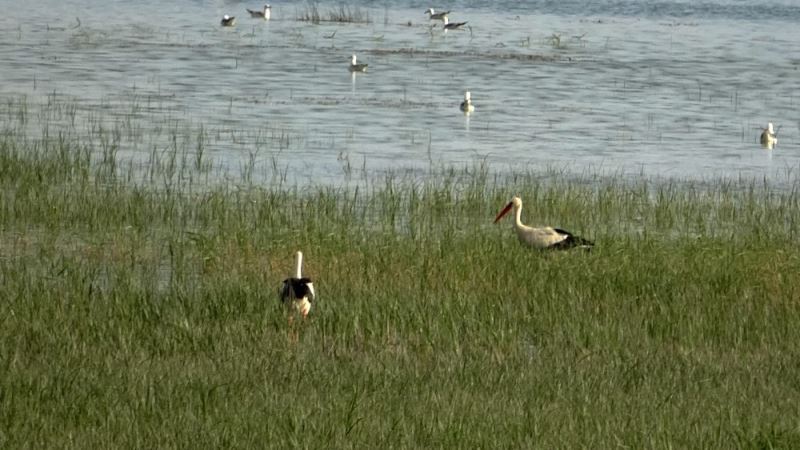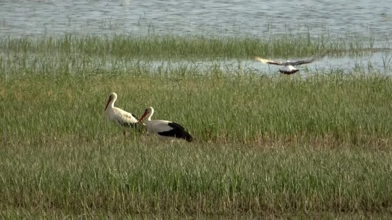 Van-Özalp kara yolu üzerinde yer alan ve martı popülasyonuyla dikkat çeken Sıhke Gölü, bu kez leyleklere ev sahipliği yapıyor.