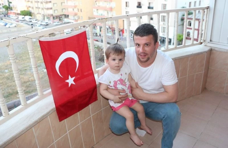 Siirt’te babasının balkona astığı Türk bayrağını öpüp anlına koyan minik kızın görüntüleri görenleri duygulandırdı.