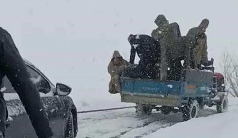 Siirt’in Şirvan ilçesine bağlı Cevizlik gurup köy yolları kar nedeniyle köy yolunda mahsur kalan ve içerisinde 5 kişinin bulunduğu araç, patpat olarak tabir edilen tarım aracı yardımıyla çıkartıldı.