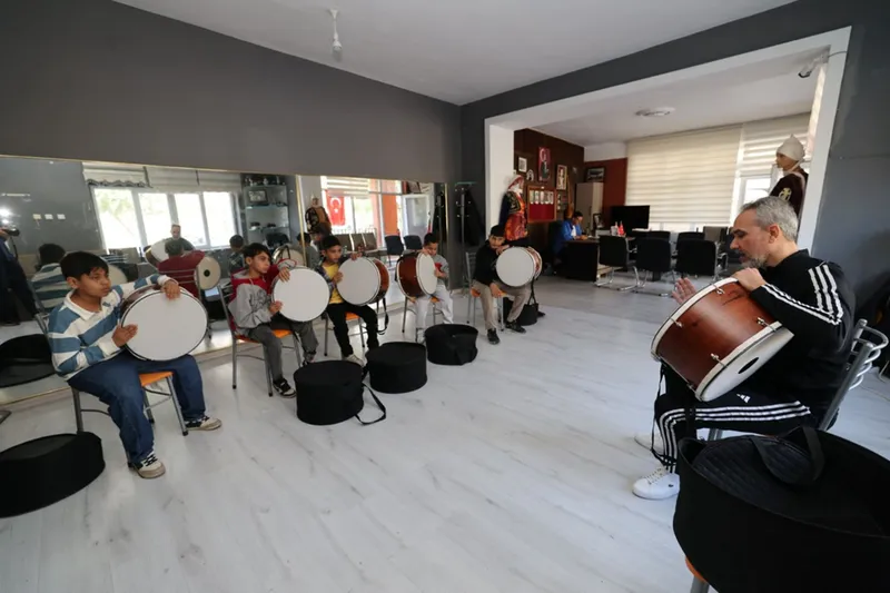 Klarnet, keman ve davul çalma eğitimi verilen kurslarda, çocukların sanatsal ve kültürel gelişimine katkı sağlanması amaçlanıyor.