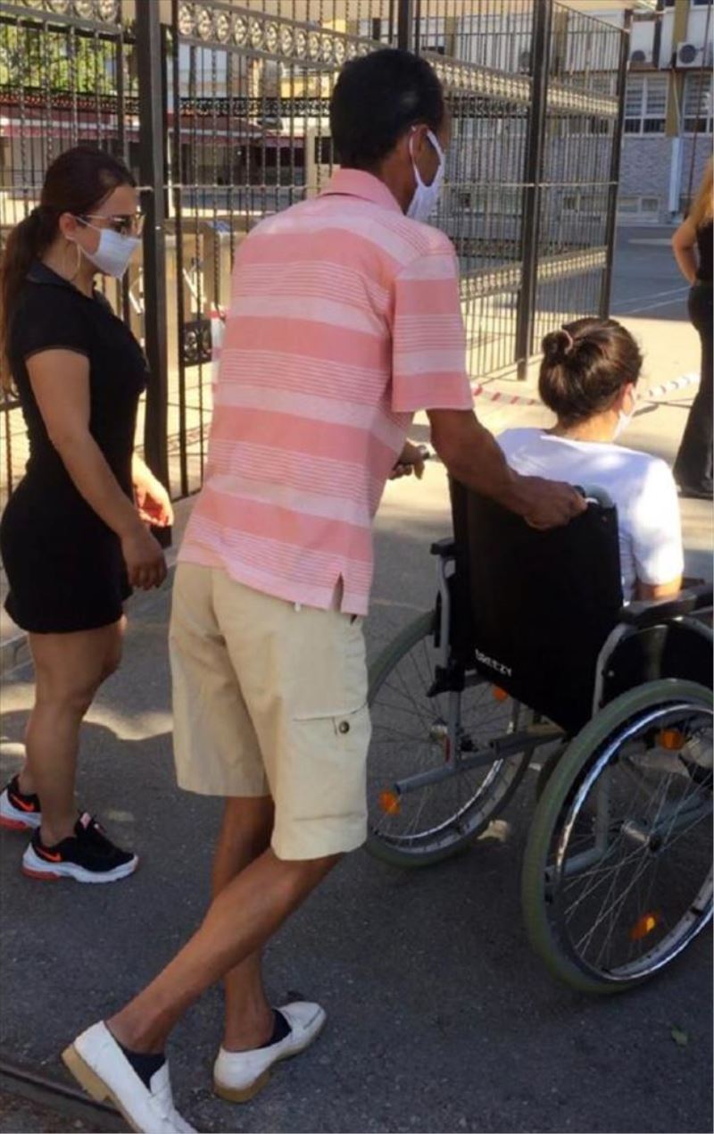 Özbas için tekerlekli sandalye temin eden ekipler, ögrencinin ailesi ve sinav görevlileri esliginde yorulmadan sinav salonuna girmesini sagladi.