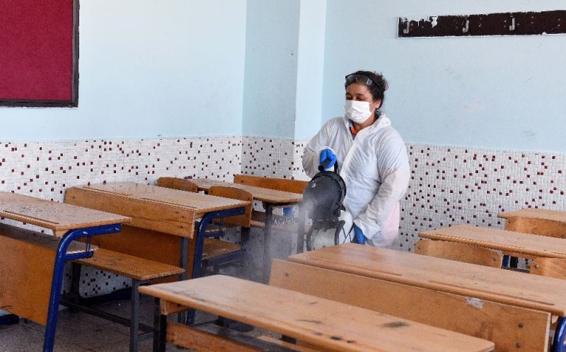 Antalya’da Muratpaşa Belediyesi, 20 Haziran Cumartesi yapılacak LGS öncesinde ilçede sınav yapılacak 40 okulda dezenfekte çalışmasını tamamladı. Belediye ekipleri, İl Milli Eğitim Müdürlüğü’nün belirlediği okullarda, bina giriş kapılarından tırabzanlara, sınıflarda kapı kollarından masa ve sıralara tek tek steril hale getirirken dezenfekte işlemi biten sınıfların kapıları da sınav günü tekrar açılmak üzere kapatıldı.
