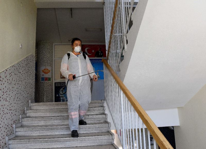 Sınavlar öncesi okullarda dezenfekte çalışması yapıldı