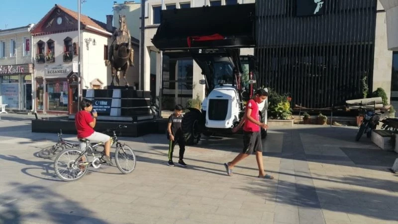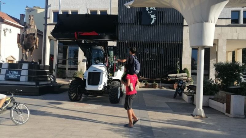 Balıkesir’in Sındırgı ilçesinde belediyenin yeni aldığı kepçeye asılan bayrağın ters dönüp sıkıştığını farkeden çocuklar arkadaşın omuzuna binerek, bayrağı düzeltmesi vatandaşlar tarafından görüntülendi.