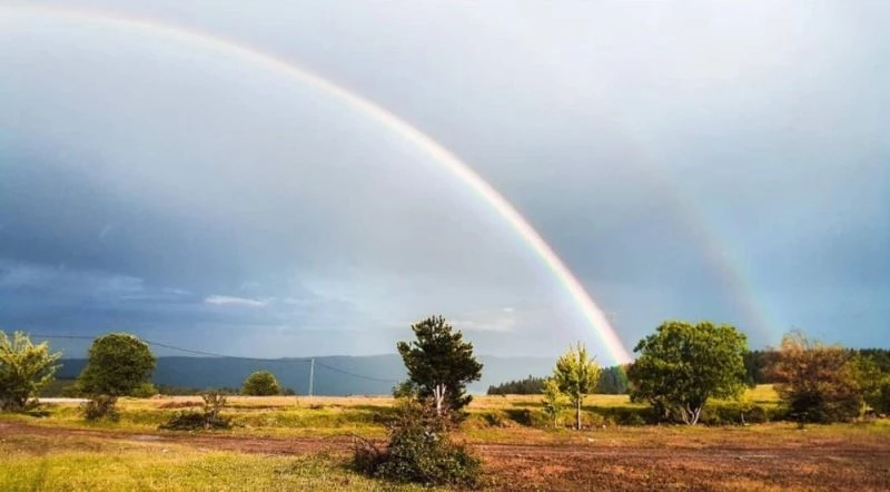 Yağan yağmur sonrası güneşin yüzünü kısa süreli göstermesiyle ortaya çıkan kırmızı, turuncu, sarı, yeşil, mavi, lacivert ve mor renkli gökkuşağı görenlere doyumsuz bir manzara sundu. Gökkuşağındaki renk cümbüşü izleyenleri mest ederken, bazı vatandaşlar gökkuşağının kısa süreli görüntüsünü cep telefonlarına kaydetme telaşı içerisine girdi.
