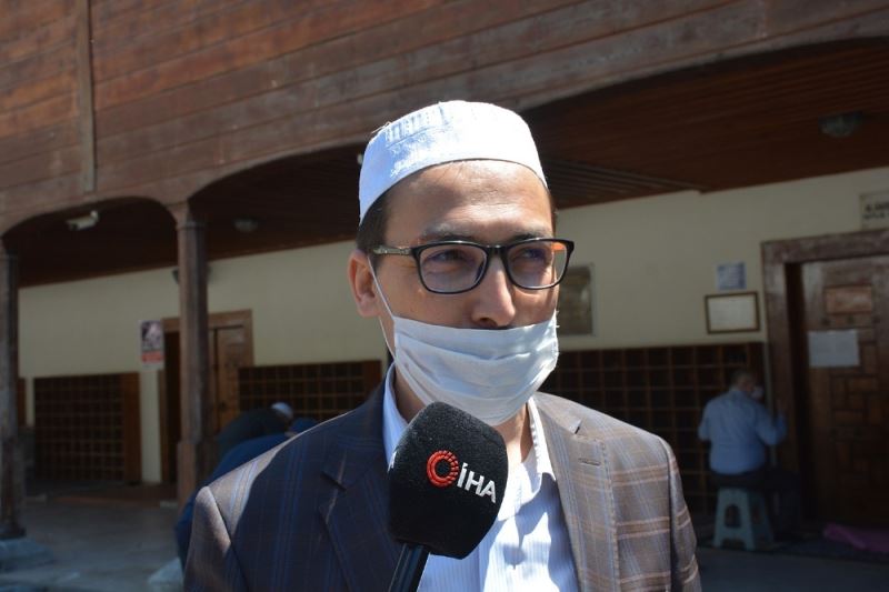 Caminin girişine vatandaşların sağlığını korumak için dezenfektan kabini kuruldu. Gelenlere tek kullanımlık seccade, maske ve kolonya veren görevliler, sosyal mesafe kuralına uyulması konusunda da uyarılarda bulundu.