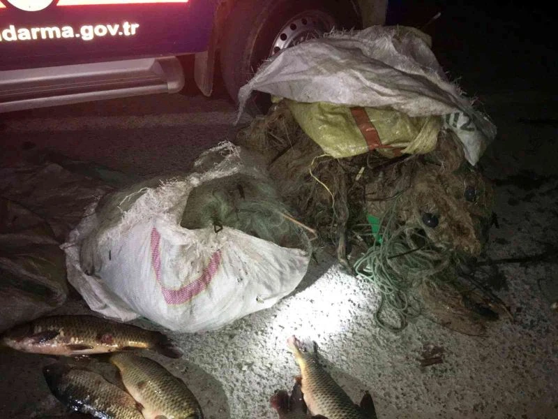 Sinop’un Durağan ilçesine gelen ihbarı değerlendiren jandarma ekipleri, ilçeye bağlı Altınkaya Baraj Gölü’nde yasak zamanda kaçak avcılık yapan iki şahsı suçüstü yakaladı. İl Tarım ve Orman Müdürlüğü ekipleri tarafından şahıslara 1380 sayılı Su ürünleri Kanunu gereğince idari işlem yapıldı. Suçüstü yakalanan şahısların yanında 8 takım ağ, 2 adet zıpkın ve tutulmuş halde 40 kilogram sazan balığına el konuldu.