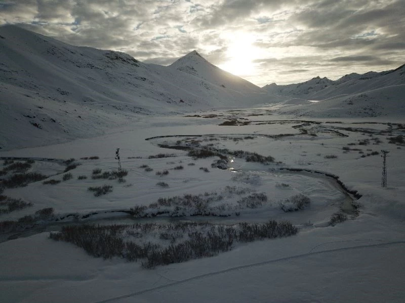 Beytüşşebap ilçesi Sibirya soğukluklarını yaşıyor. İlçeye 45 kilometre uzaklıkta bulunan 2 bin 650 rakımlı Yeşilöz köyü Faraşin Yaylası çetin geçen kış aylarında buz kesildi. Kilometrelerce uzanan Yeşilöz Deresi hava sıcaklığının eksi 25 dereceyi bulmasıyla buz pistine döndü. Drone ile havadan çekilen menderesler kartpostallık görüntü oluşturdu.