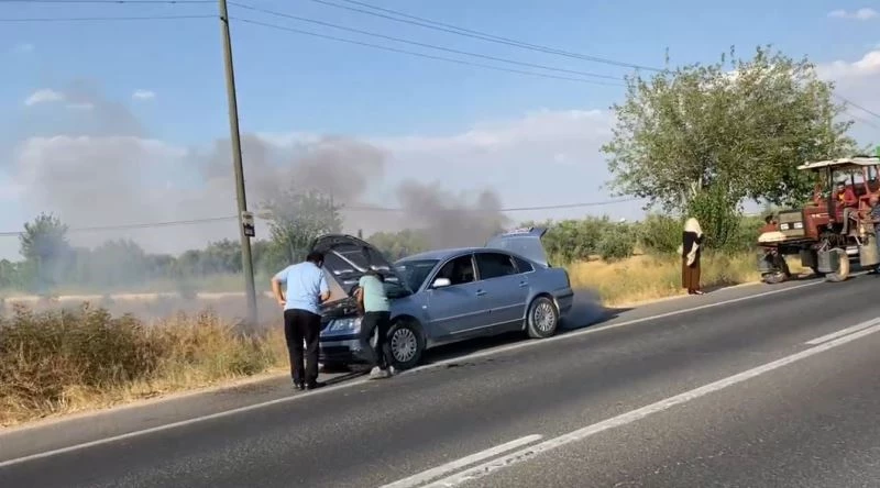 Seyir halindeyken dumanların yükseldiği otomobile yoldan geçen diğer araç sürücüleri müdahale etti. Sürücüler şişelerle su dökerek, yangını büyümeden söndürdü.
