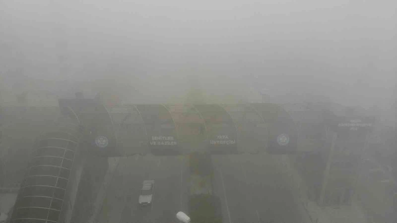 Manisa’da sabah saatlerinde yoğun olan sis nedeniyle görüş mesafesi yer yer 2 metreye kadar düşerken sisin içinde kaybolan kent havadan görüntülendi.