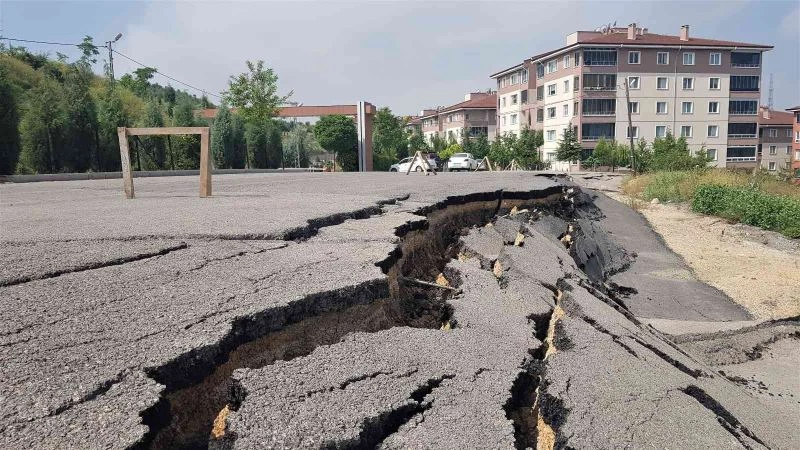 Karabük’te site otoparkında meydana gelen heyelanda derin yarıklar oluştu.