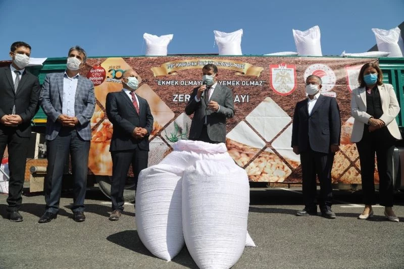 Konuşmaların ardından Zeron buğdayının gelecek nesillere aratılması için 200 çiftçiye 50 ton buğday dağıtımı yapıldı.