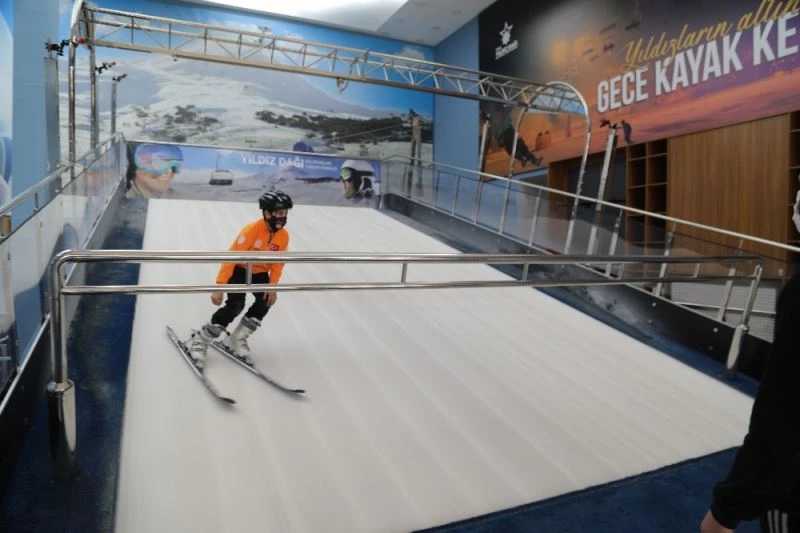 Sivas Valiliği tarafından hizmete alınan Türkiye’nin ilk kayak simülasyon merkezlerinden biri, kayakseverlere yaz ve kış aylarında da kayma imkanı sağlıyor. Sivas Valiliği İl Özel İdaresi imkanları ile 770 metrekarelik alanda oluşturulan simülasyon merkezinde, kayak eğitim faaliyetleri yılın 12 ayı sürdürülüyor. 161 metrekare simülatör yerleşim alanında özellikle çocuklara, polis memurlarına ve askerlere kayak eğitimi verilebiliyor. Sivas Valisi Salih Ayhan, korona virüs önlemleri kapsamında yaşları 10 ila 15 arasında değişen 35 öğrencinin kayak eğitimi aldığı Kış Sporları Eğitim Merkezi’ni ziyaret etti. Ziyarette yetkililerden bilgi alan Ayhan, öğrencilerle sohbet etti. Öte yandan İl Milli Eğitim Müdürü Ebubekir Sıddık Savaşçı da ziyarette yer aldı.