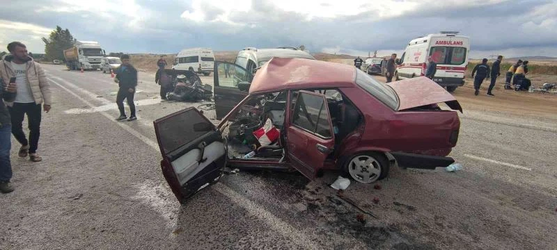Sivas’ta meydana gelen trafik kazasında çarpışmanın etkisi ile bir otomobil iki parçaya ayrıldı.