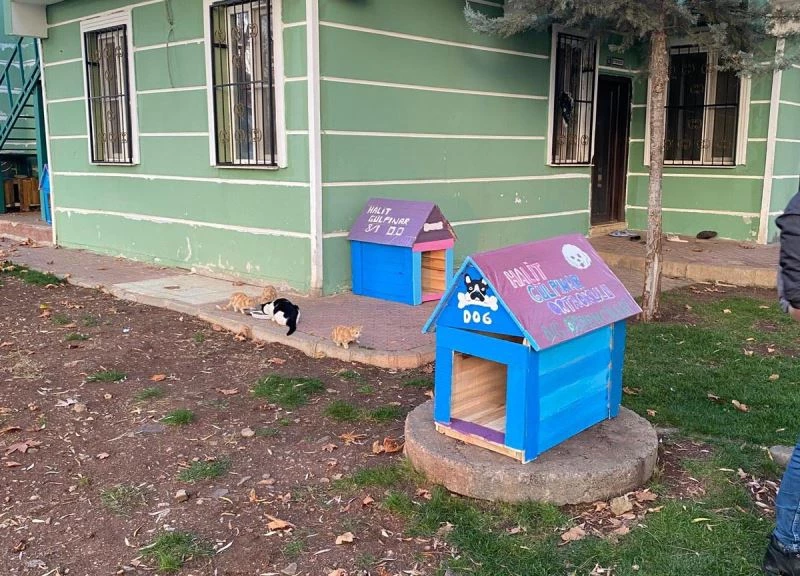 Siverek’te sokak hayvanları için kulübeler yapıldı