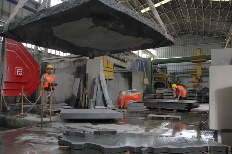 Üretim sürecini anlatan Dilbaz, “Nebiyan Taş Ocağı’ndan sal kaza kamyonlarla 20-30 ton arası ağırlıkta büyük bloklar geliyor. Büyük blokları plak taşa çeviriyoruz. Stok alanımızda onları stokluyoruz. Belediyemizin projelerine ön hazırlık yapmış oluyoruz. Aynı zamanda yüzey işlemi yapabiliyoruz. Yakma, cilalama bir de fırçalama işlemimiz var. Yüzey işlemi yaparak taşın rengini değiştirmiş oluyoruz. Aynı zamanda katma değerini yükseltiyoruz. Belediyenin bütün projelerinin alt yapı taşları, görsel kent mobilyaları bunlara önem verdik. Kuş evinden tutun, soyut kuş evine, şehit mezarından tutun sütuna saksıya kadar görsel ürünler üretebiliyoruz” diye konuştu.